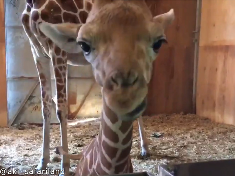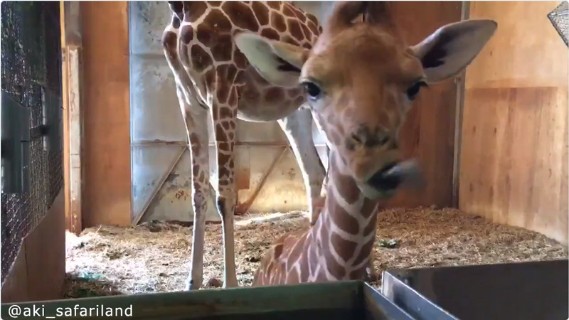 山口県にあるテーマパーク「秋吉台サファリランド」の公式Twitterが、赤ちゃんキリンの動画を投稿。