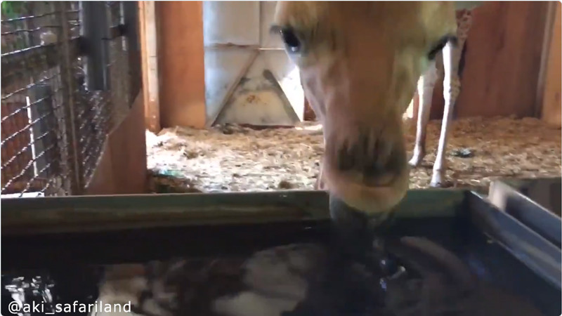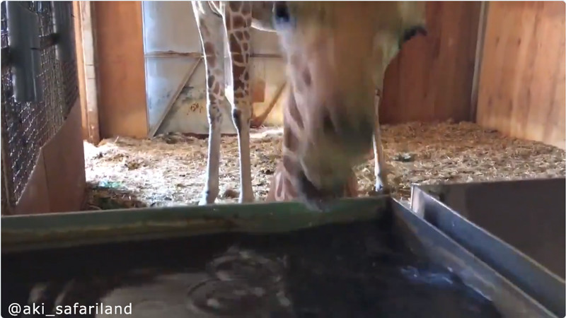 「何これええええ!?」はじめての水の感触に驚くキリンの赤ちゃん(動画)