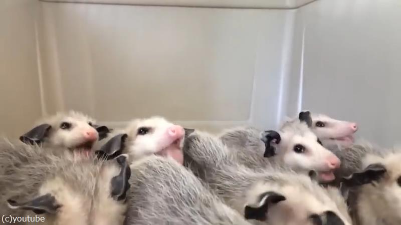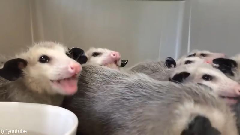 もぐもぐ…オポッサムたちのお食事タイムはクセになる(動画)