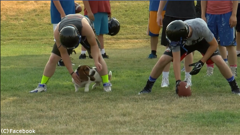 キュートなしぐさでアメフト練習を邪魔する犬(動画)