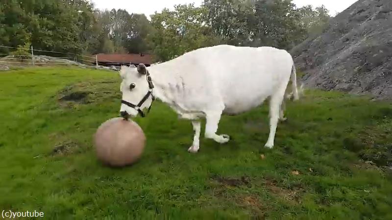 犬も顔負け…牛もボール遊びをするんだなぁ(動画)