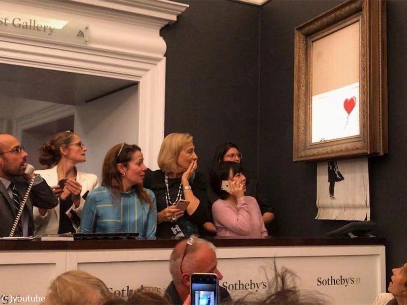 彼の代表作「少女と風船」がオークションで104万2000ポンド(約1億5000万円)で落札されたのですが、その直後に前代未聞のハプニングが起きました。