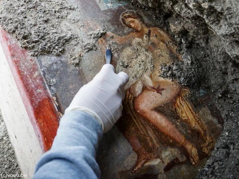 古代ローマの都市からスパルタ王妃と白鳥に化けた神の官能的なフレスコ画が発掘される
