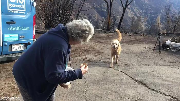 避難命令が解除され、夫妻とミゲルが自宅跡を訪れると……しっぽを振って駆け寄るマディソン。