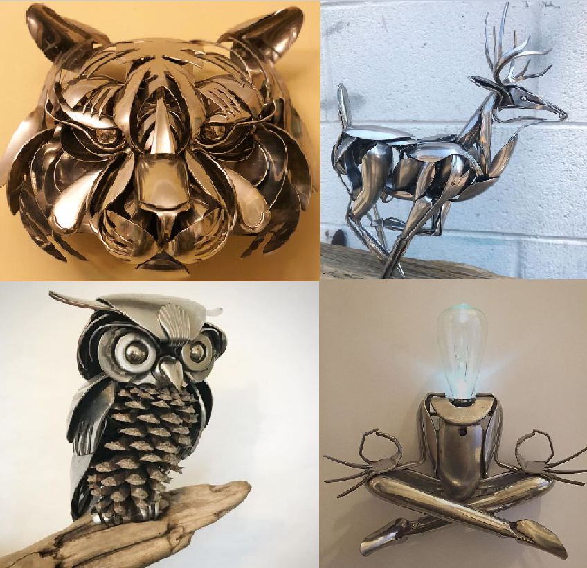 アメリカ在住のアーティストであるマット・ウィルソンさんの作品で、スプーン、フォーク、ナイフなど使った動物アートを作っているとのことです。