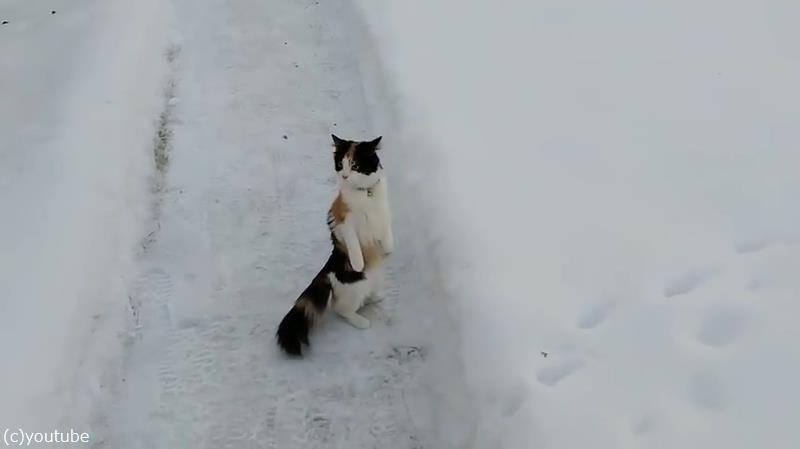 Cat Stands on Hind Legs in Snow - YouTube