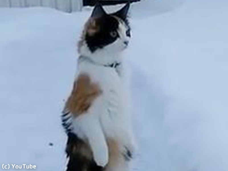 うちの猫は雪景色を見ると…こんな姿勢になる(動画)