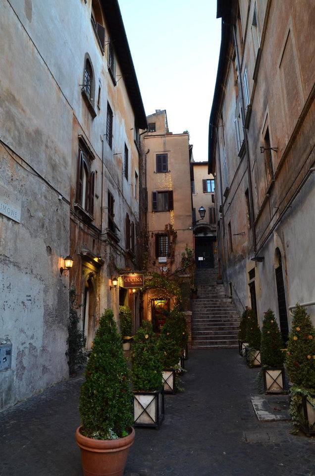 ●ローマで体験したもっともおいしい思い出は、こんな風に路地にあったレストランだった。