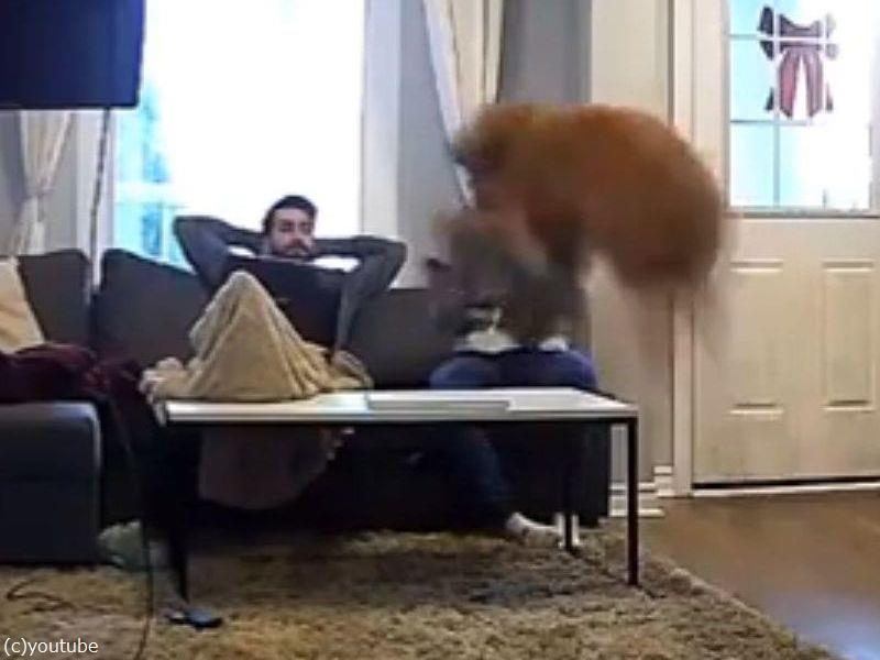 まったく問題はなかったとのことで、犬も大好きな飼い主にダメージが行かないように着地しているのかもしれませんね。