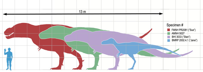 (参照:これまで最大とされた「スー」(赤色)と人間の比較サイズ)
