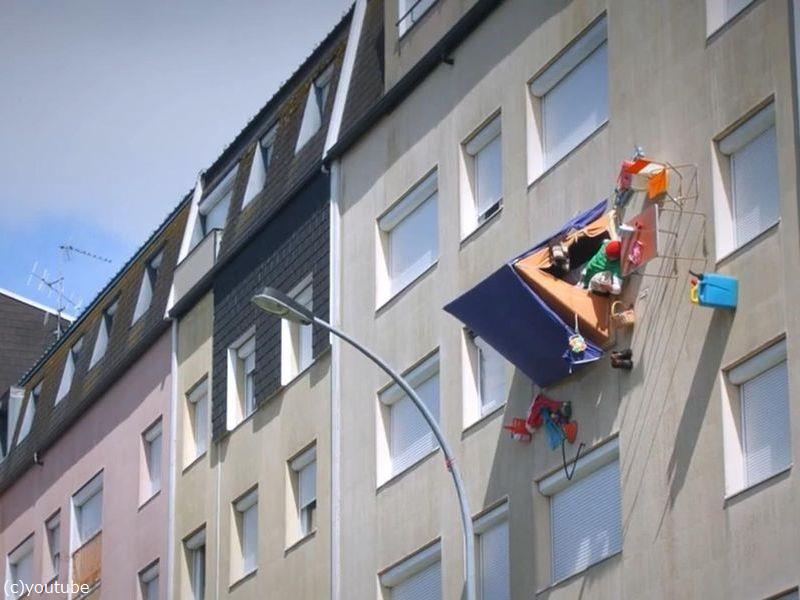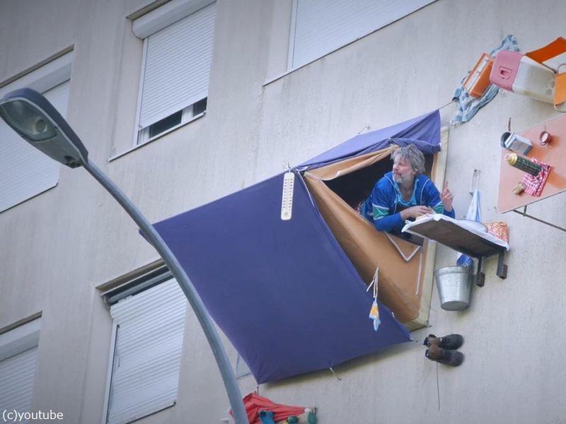 重力を無視するフランス人…建物の壁の上でテント暮らしを始める
