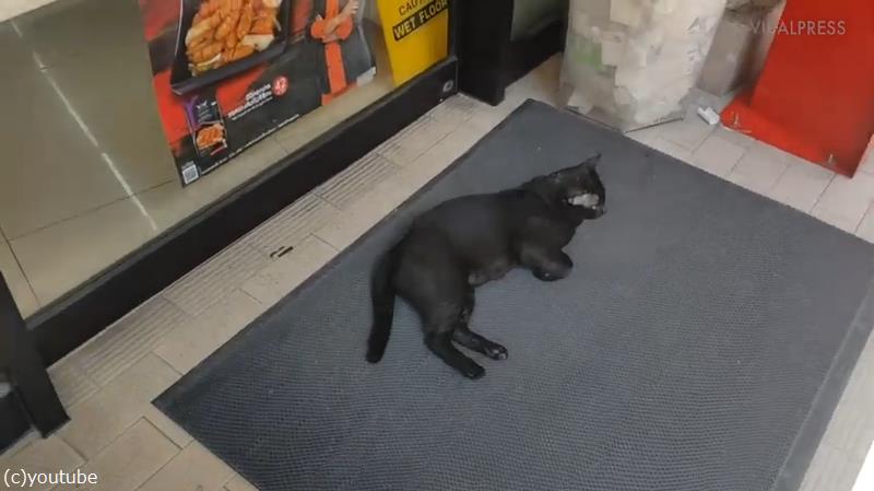 (コンビニの自動ドアに挟まれた犬…そのままウトウト眠り続ける(動画))
