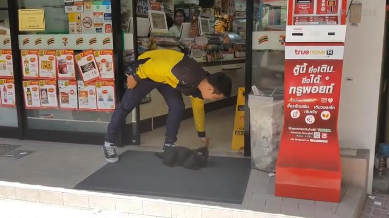 同じようにコンビニの出入口で涼むワンコの動画は以下からどうぞ。