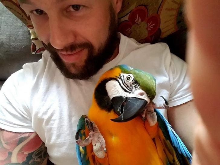 ↑(投稿者)そうだよ。30歳になるコンゴウインコのココナッツ。好奇心を刺激されたようで、何をしているのかと外を見たがったので連れてきた。