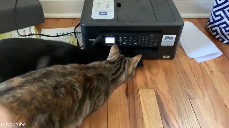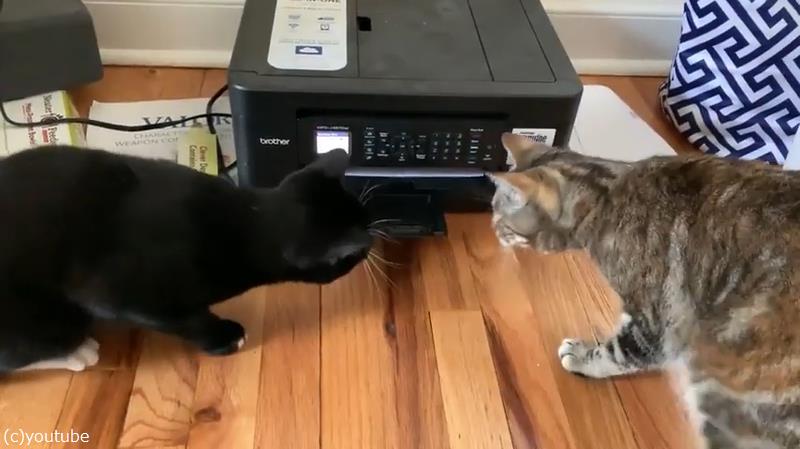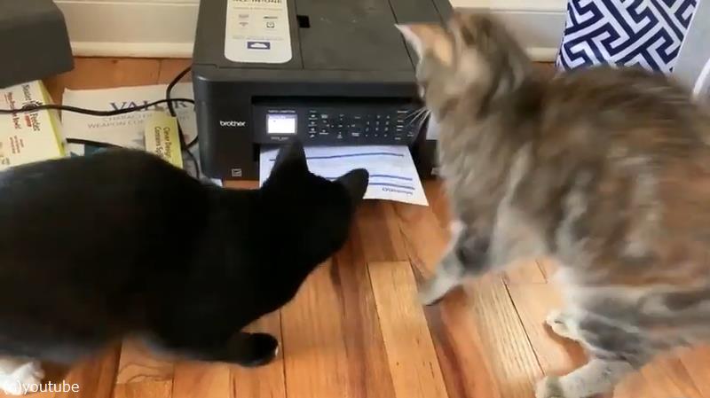 猫2匹…プリンターの動きにひたすら翻弄される(動画)