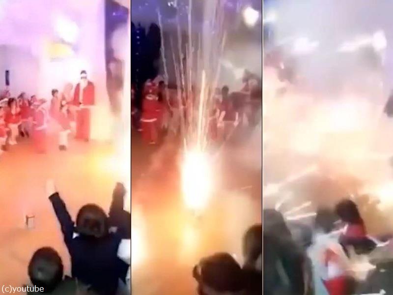 ほほえましいクリスマス会の演出として、室内花火をに点火したつもりが……。