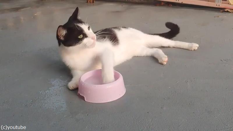 Cat Dip Paw in Bowl to Drink Water - YouTube