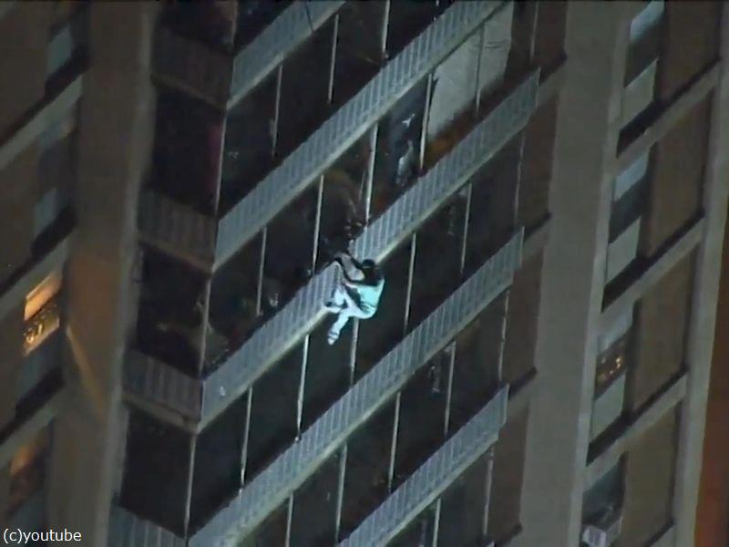 「まるでスパイダーマンみたいだ…」高層ビル火災から男性が壁伝いに降りて脱出する