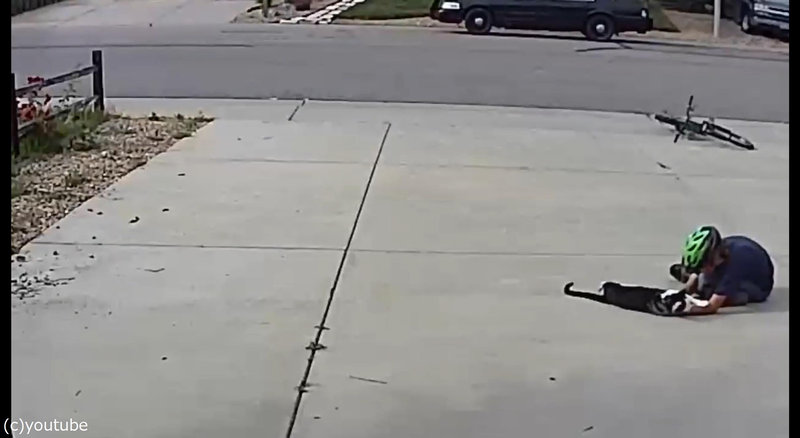 ↑こっそり近所のガレージに入って犬にハグをする少年を思い出した。