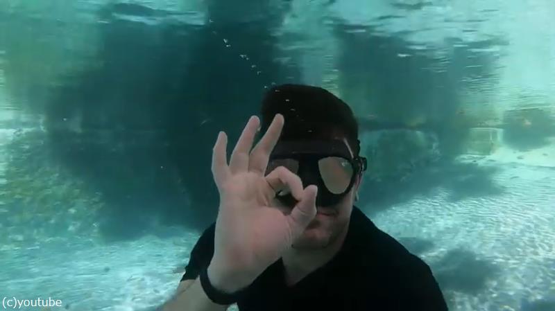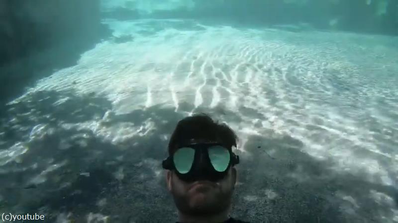 潜水しながら撮影する男性の頭上には……。