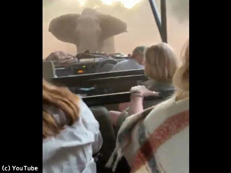 観光客を乗せた車にゾウが突進…映画さながらの映像(動画)