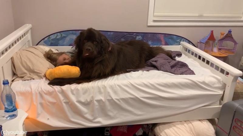 シエラちゃんが夜怖くて寝付けないときは、サムソンくんがこのように寄り添って、彼女を守ってあげているのだそうです。
