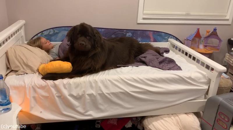Little girl has best sleepover ever with her Newfoundland dog - YouTube