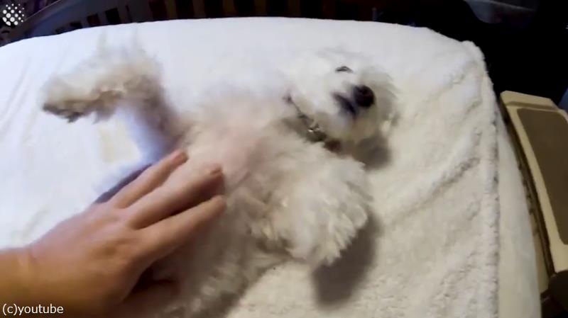 「お腹をナデナデして!」アピールがやけに激しい犬(動画)