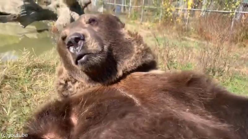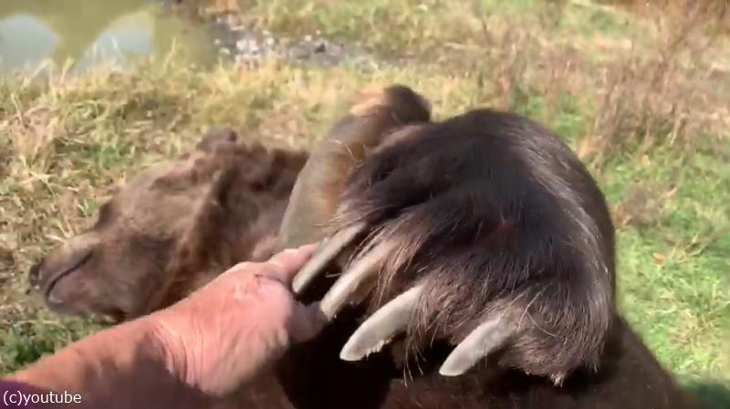 野生を完全に失ったクマ…肉球をサワサワされてもこの通り(動画)