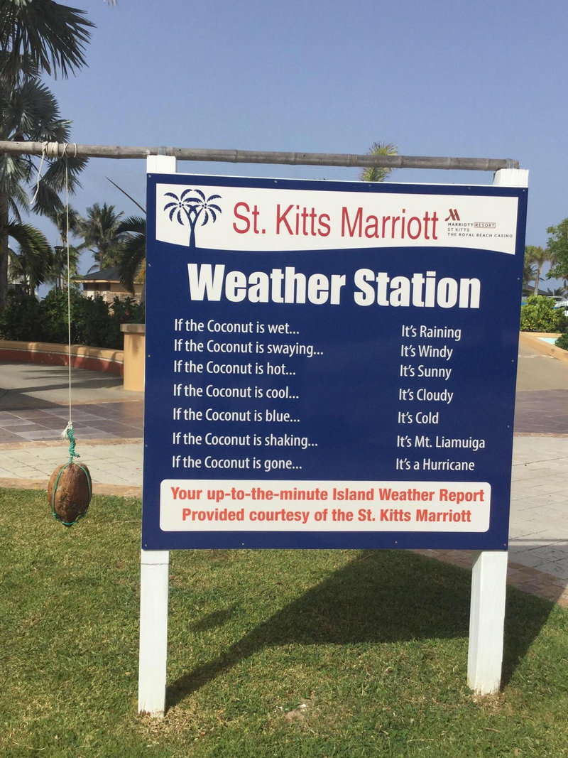 The Marriott in St. Kitts uses a coconut as a weather station.
