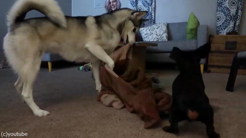 心優しいハスキー、ピンチの犬を助けてあげる(動画)