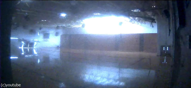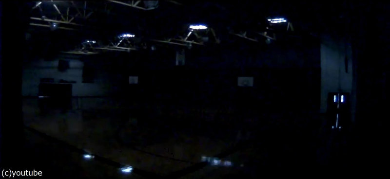 ●照明が切れてすぐ左側を見ると、入り口の壁が一瞬にして吸い込まれているのがわかる。その間は屋根なし観覧席は何の被害もない。
