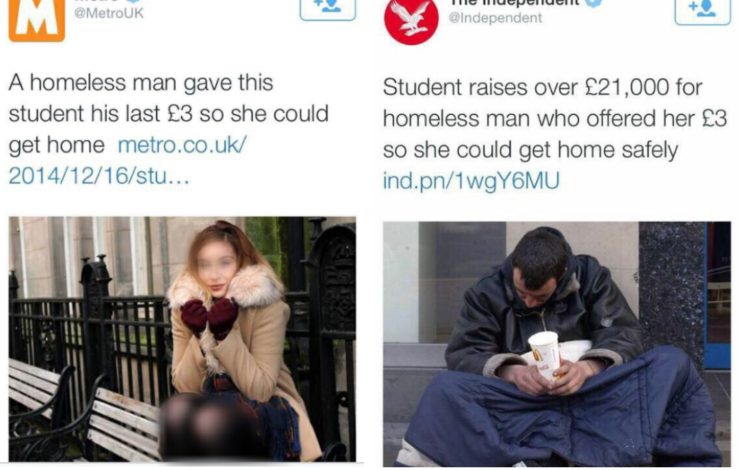 女子学生「ホームレス男性がなけなしの3ポンドを恵んでくれた…」→心を打たれて寄付を募る