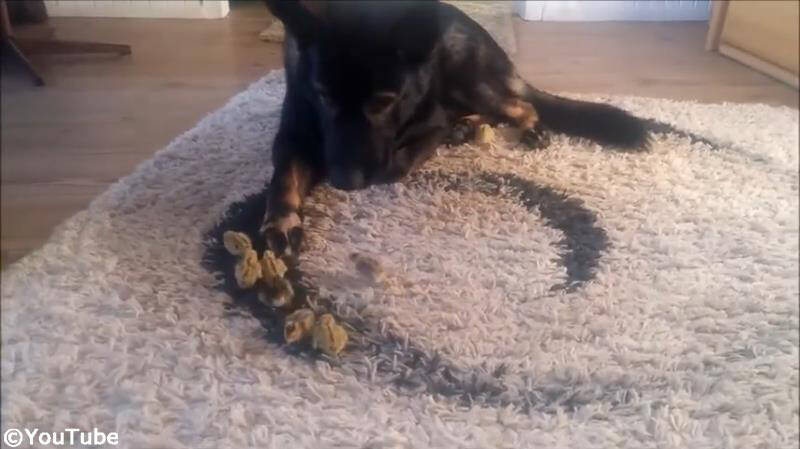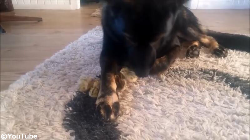 穏やかなひととき…犬とウズラの赤ちゃんたちの関係にほっこり(動画)
