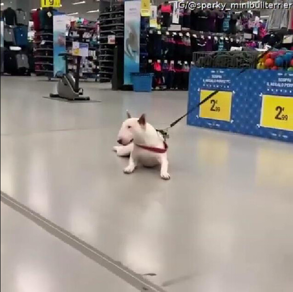 イタリア・カステネードロで、ブルテリアのシュールなお散歩風景が人気を呼んでいました。