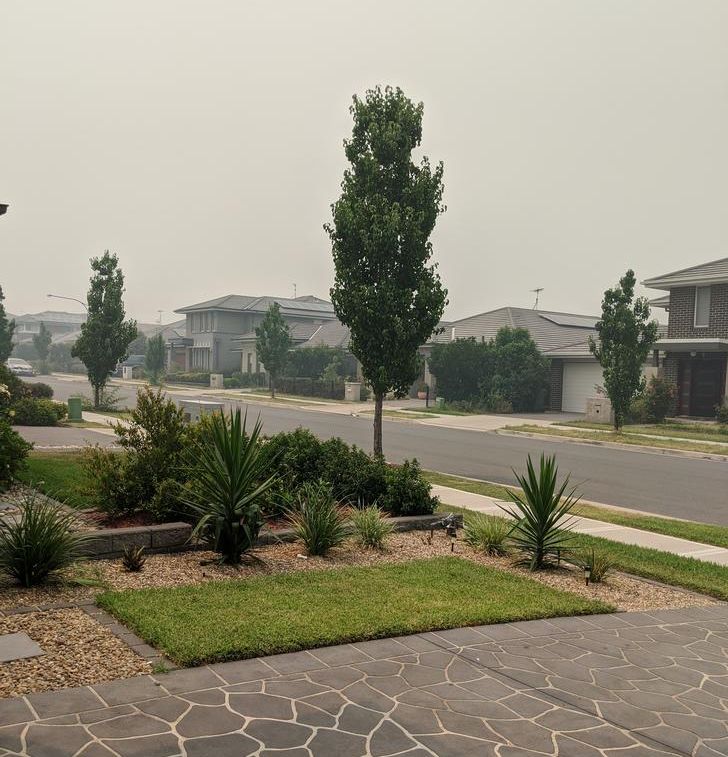 ●家の外を見たとき、ほんの25km先くらいまでしか見えなかった。でもそれは数週間前のことで、今はもっとひどくなった。シドニー西部の自分の家からの写真。