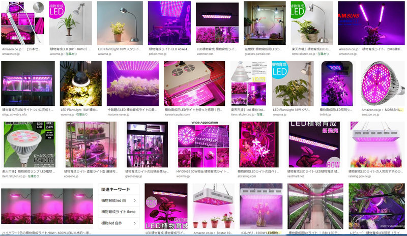 「led植物育成ライト」でGoogle画像検索するとこのような結果に。