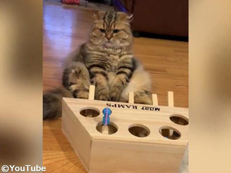 アメリカ・マサチューセッツ州のお宅で暮らす猫の「ジョージー」くん。木のおもちゃで遊んでいるようなのですが、次の瞬間……。