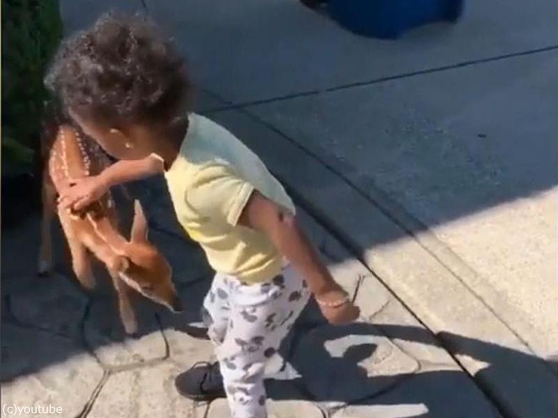 バンビのような鹿の赤ちゃんが…小さな女の子と出会った(動画)