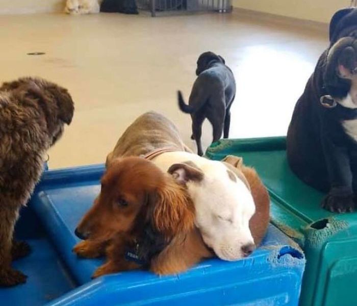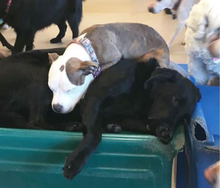Dog Finds The Fluffiest Dogs In Daycare So She Can Nap On Them
