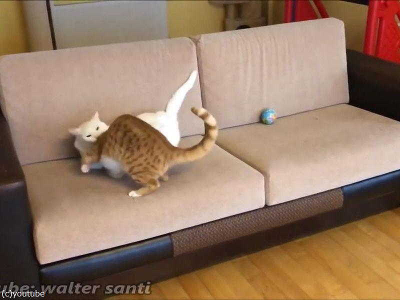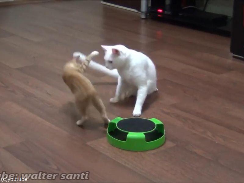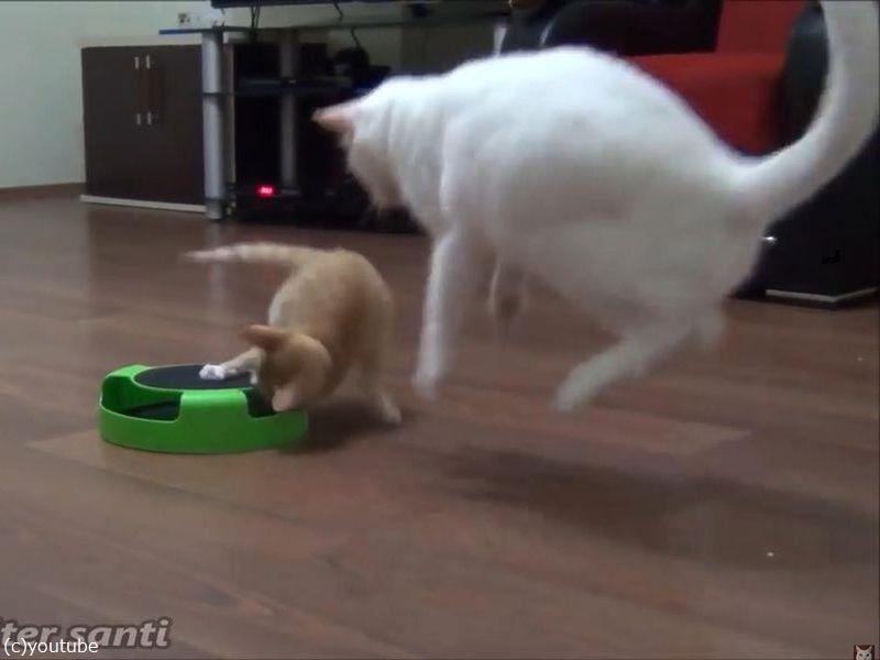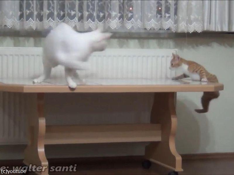 おとな猫を驚かすのが大好きな子猫…あの手この手で襲撃し続ける(動画)