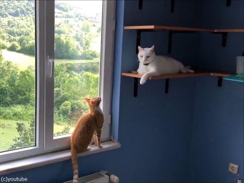 キャットウォークが設置された、猫たちにとって快適なお家のようですね。