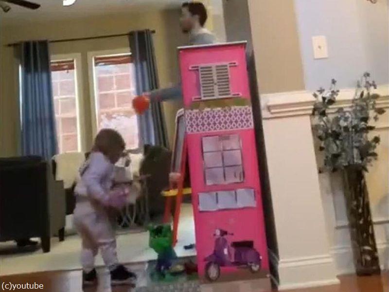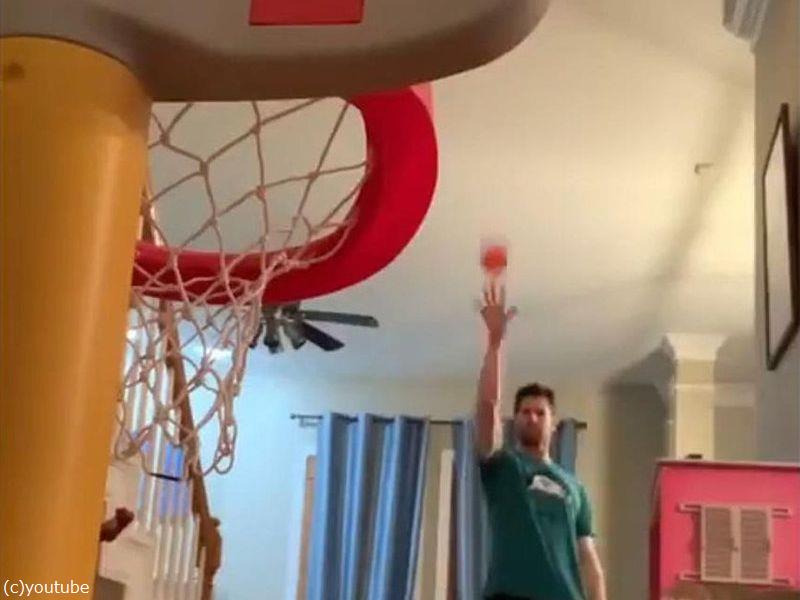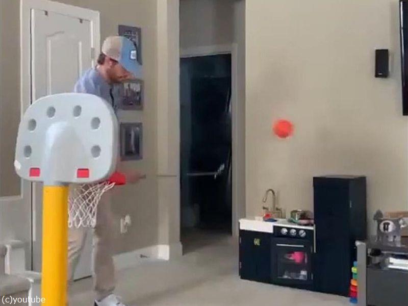 娘のバスケのおもちゃでスーパープレーを連発するパパ(動画)