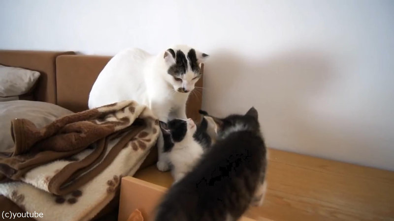 「子猫たちが自分のまわりを走り回ると…何匹かわからない!」(動画)
