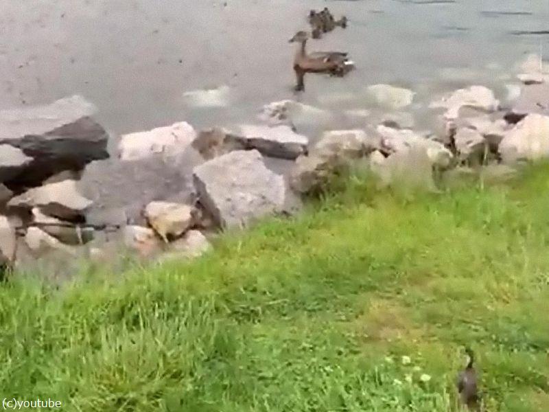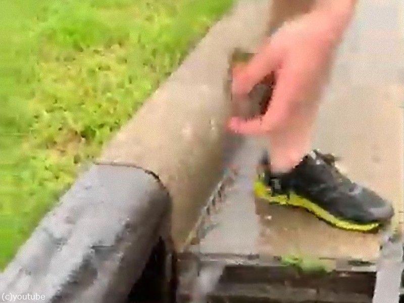 排水溝にカモのヒナ鳥が落ちていたので救出…家族と合流する(動画)