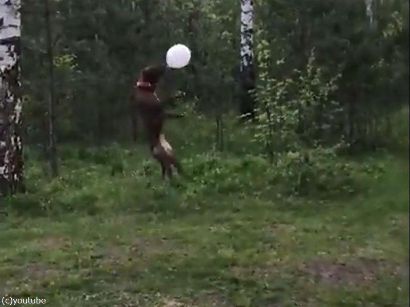 飼い主さんと風船で遊ぶこちらのワンちゃんは、トスするのがとても上手。