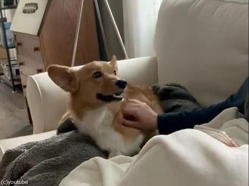 「コチョコチョして!」アピールがちょっぴり強引なコーギー犬(動画)