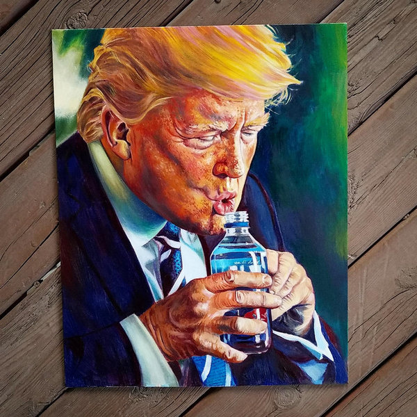 ↑トランプ大統領のドクターは彼の握力が強すぎて、両手を使って握力を弱めなければ、水のボトルを破壊してしまうと発表していたよ。