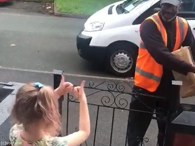 耳の不自由な配達員に「あいさつ」したい女の子、見よう見まねで手話を覚える