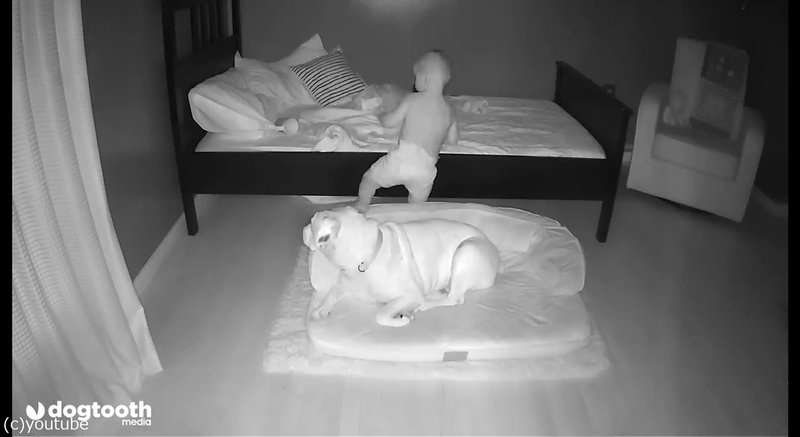 ベッドで寝てたはずの赤ちゃんが毎朝犬の横にいるので…監視カメラで確認してみた(動画)